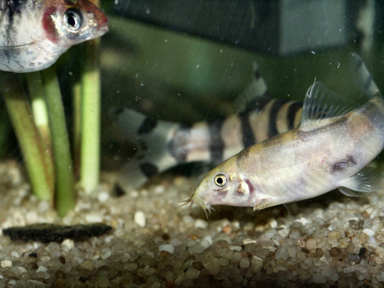Botia histronica - Two fighting. Front fish is "grayed out"