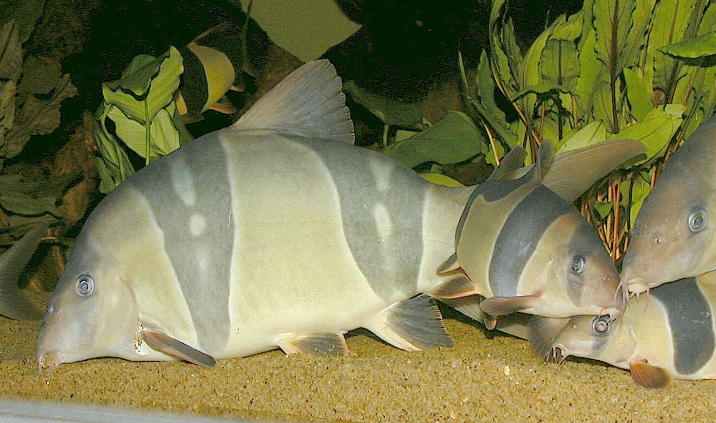 Chromobotia macracanthus, sifting sand though gills. This fish, "Marge" is 11.5" long