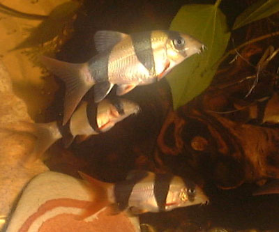 Chromobotia macracanthus - Youngsters with fat bellies just after eating.