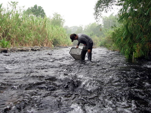 Gastromyzon unknown02, natural habitat. Note visibly fast current.